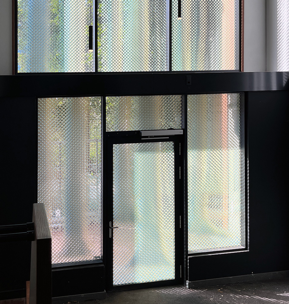 De gelaagde keramische print op het glas geeft Cornelis een bijzondere entree.